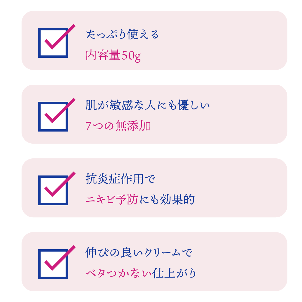 - シワ改善、シミ対策(美白)効果のある「ナイアシンアミド」配合